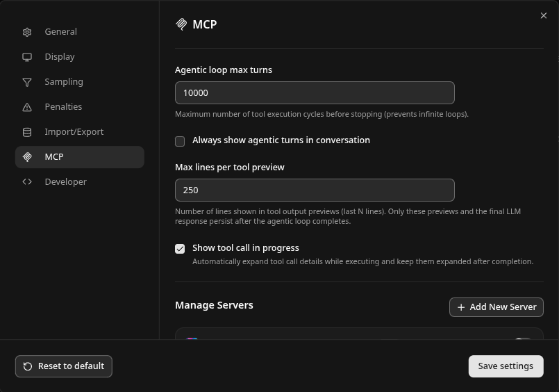Click the refresh button on the Llama.cpp MCP side, and make sure the tool is enabled it will look like the following: