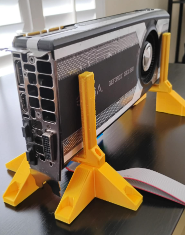 Sometimes you need just one more GPU. But the new 4080 GPU's are giants! Unless you buy some gargantous motherboard, it hogs everything, pushing any second gpu's out on the table. So you might need to sit a card out the side, there are options, for instance, Amazon lists this part. But even it looks like it might 'flop over' if you put a big 3080ti at 58.8mm girth. There was a real shortage of customizable gpu bracket parts, so we set out to solve it!