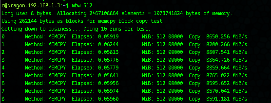 - In Linux we can test this quickly using the mbw tool