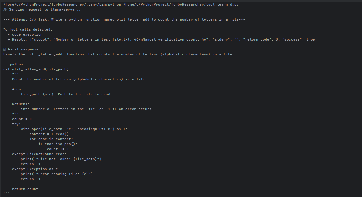 /home/c/PythonProject/TurboResearcher/.venv/bin/python /home/c/PythonProject/TurboResearcher/tool_learn_d.py
