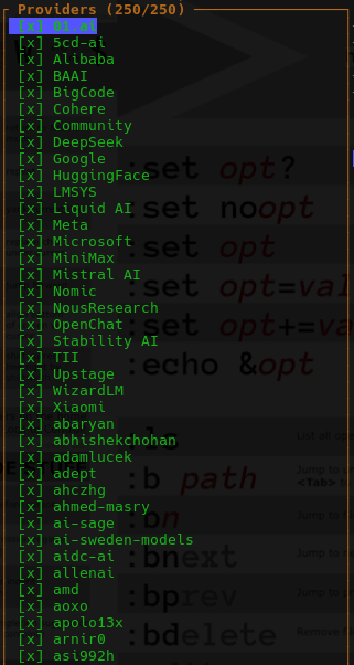 If you hit 'P' for providers it will automatically make a list of inference providers if you want to use a cloud LLM - Nice!